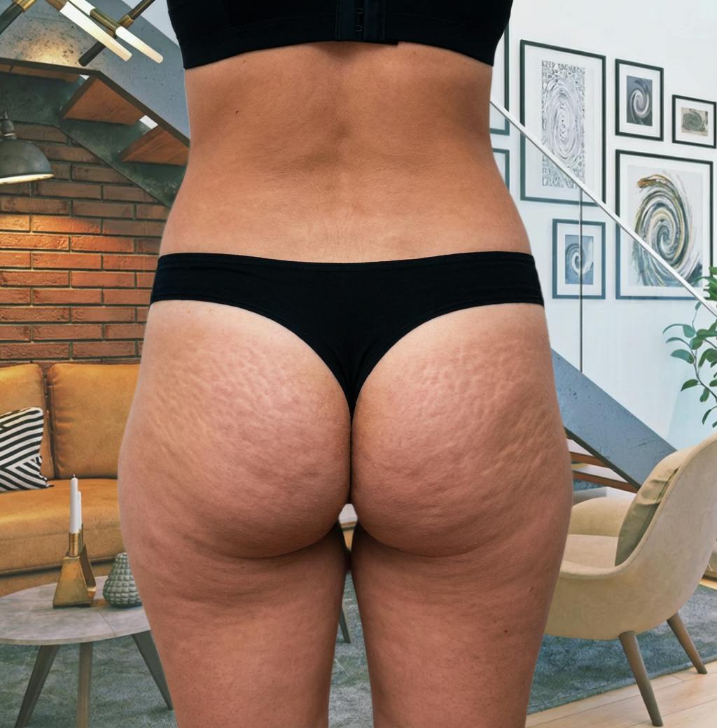 You can see my cellulite was really visible. After a few weeks using this bundle, the 'after' picture says it all—my skin is so much smoother and firmer. I'm thrilled!
