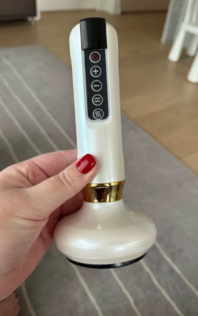 Apply the Caffeine Gel or Body Oil to clean skin before use. Glide the massager slowly in circular motions over the desired area for 10–15 minutes per session. Avoid holding it in one place for too long.
